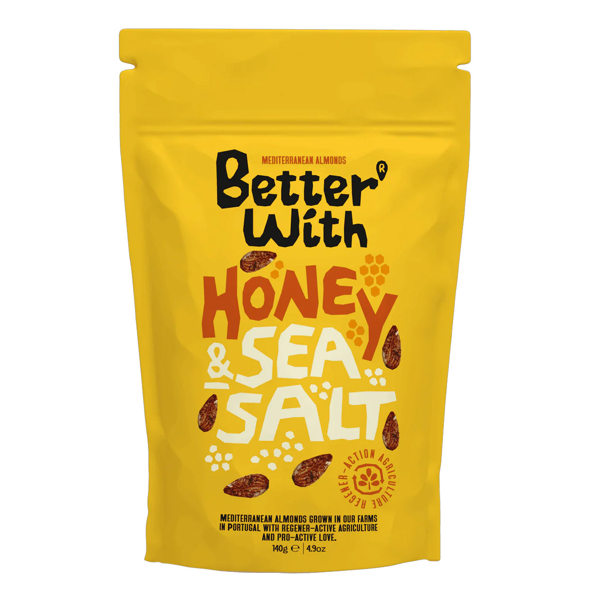 Our Better With Honey and Sea Salt Almonds were created to provide the pleasure of the perfect combination between honey's sweeteness and the taste of sea salt. They're pure joy, a true delight to the palate.