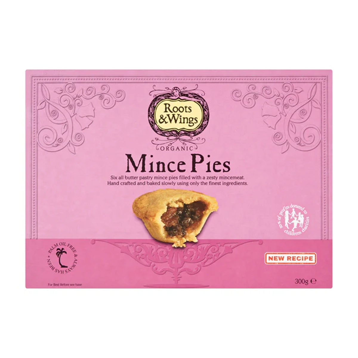 At Roots & Wings Organic we make all of our mince pies using the finest ingredients including pure West Country butter, British milled organic wheat, fresh apples from Hereford, plump organic vine fruits, zesty spices and a dash of warming Cognac. Our mince pies are made by hand in small batches and baked slowly to ensure a crisp and deliciously butter pastry filled with zesty mincemeat. Perfect.